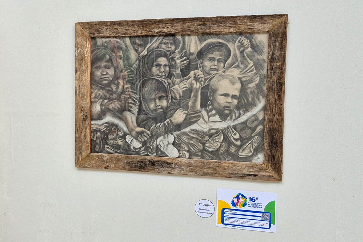 Um exemplo marcante dessa profundidade é a obra “Shoah”, vencedora do Salão de Artes de Itupeva em 2025, na categoria Desenho/Gravura. Segundo o artista, a obra em grafite, inspirada nas crianças de Gaza, faz uma alusão ao Holocausto. Nela, “o semblante translúcido das crianças no caos da fome, do frio e da ausência dos familiares, expressa uma gota de esperança que se funde à realidade de um futuro sombrio”, afirma Irineu.