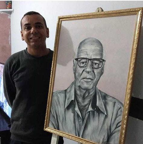 “Eu comecei a desenhar desde que me conheço como gente, muito pequeno. Com 9 anos fui encontrado por ela, e comecei a frequentar o ateliê dela e aprender as técnicas de tinta a óleo,” relembra Júlio.