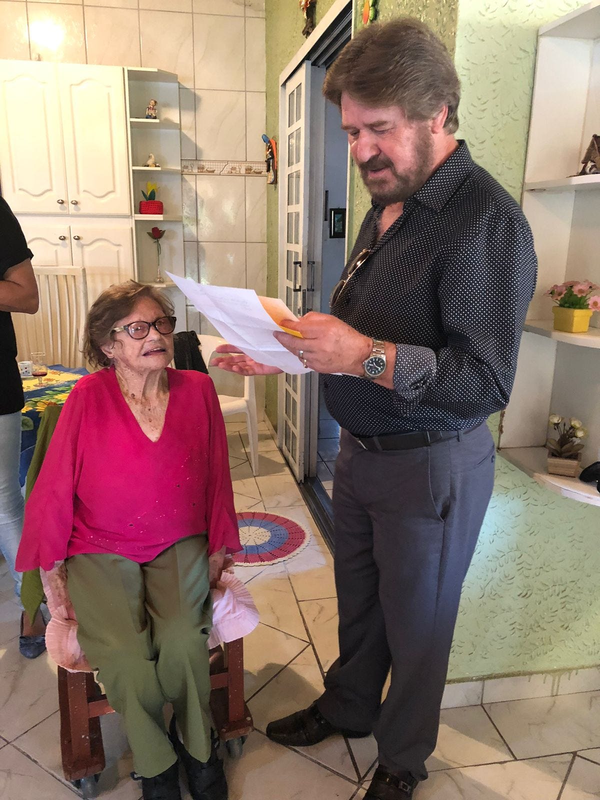 Um dos momentos mais marcantes deste dia foi a visita surpresa do poeta Paulo Roberto dos Anjos (in memoriam), que homenageou a Léo com uma poesia composta especialmente para ela e a declamou em voz alta e de forma emocionante. Todos os convidados acompanharam silenciosamente este momento mágico. E Léo, logo em seguida, fez questão de declamar uma de suas poesias.